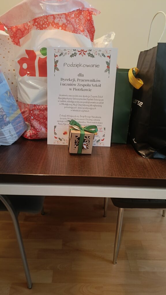 Dzięki ogromnemu zaangażowaniu Nauczycieli, społeczności szkolnych, a także Szkolnemu Kole Wolontariatu Zespołu Szkół w Piotrkowie i Bychawie przeprowadzono akcję, która miała na celu wsparcie uczniów z Zespołu Szkół Specjalnych przy Uniwersyteckim Szpitalu Dziecięcym w Lublinie. Różnorodne dary, w tym słodycze, zabawki, gry edukacyjne, książki, artykuły szkolne oraz odzież wywołają uśmiechy na twarzach dzieci, a także uatrakcyjnią im formy spędzania wolnego czasu na oddziałach szpitalnych. Przedsięwzięcie to spotkało się z szerokim odzewem i zaangażowaniem darczyńców, pokazując, jak wiele dobra można wspólnie zdziałać. Akcja przyczyniła się do stworzenia serdecznej atmosfery.