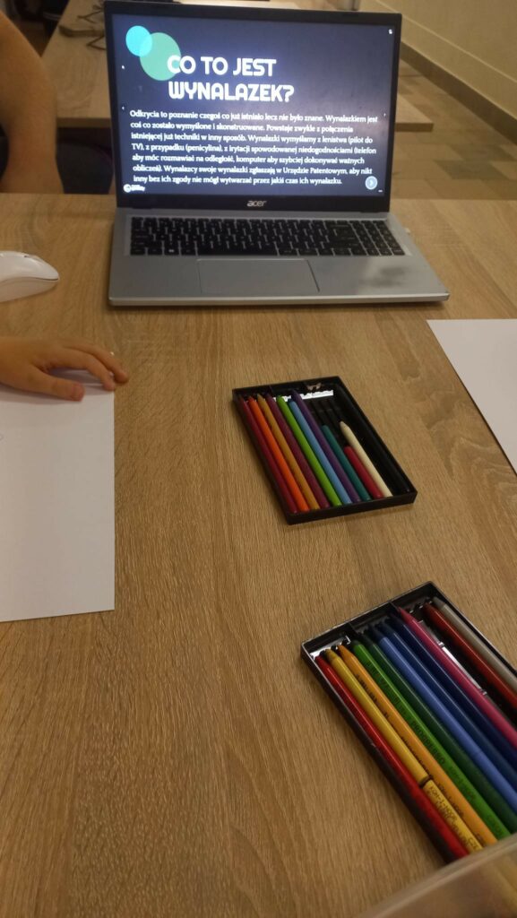 W bieżącym roku szkolnym nasza placówka włączyła się w realizację ogólnopolskiego projektu edukacyjnego “Aktywna świetlica. Miejsce pełne pomysłów”. W ramach zadania 3 tj. Wynalazki jutra z 1 modułu uczniowie obejrzeli prezentację na temat wynalazków, po czym stworzyli projekty przedmiotów ułatwiających życie w przyszłości.