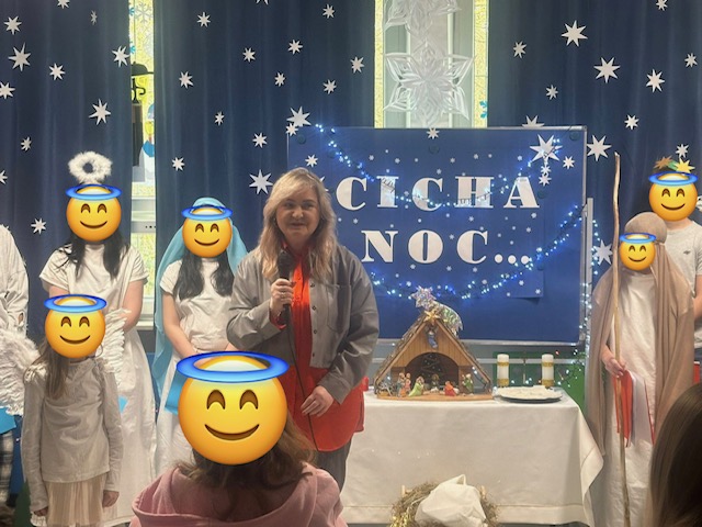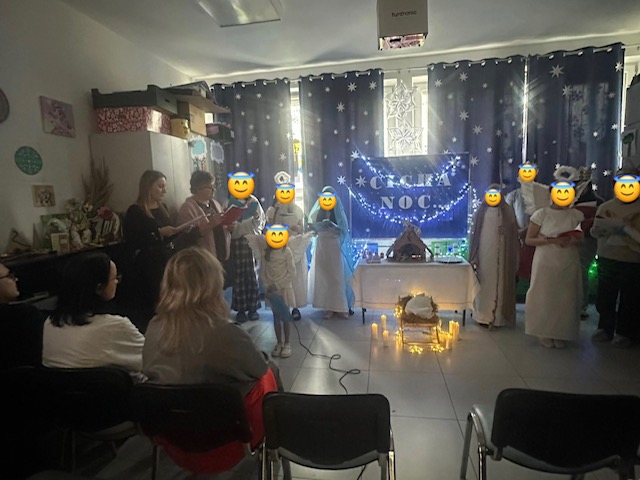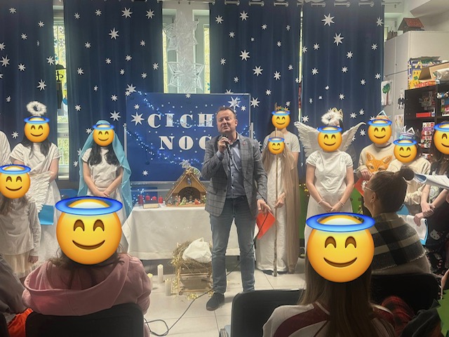 W filii naszej szkoły odbyło się doroczne spotkanie bożonarodzeniowe, które zgromadziło zaproszonych gości i społeczność Oddziału Psychiatrycznego dla Dzieci i Młodzieży Szpitala Neuropsychiatrycznego im. prof. Mieczysława Kaczyńskiego. Centralnym punktem wydarzenia była część artystyczna przygotowana przez dzieci i młodzież oraz wspólne kolędowanie. Młodzi artyści zgromadzeni wokół żłóbka wcielili się w role aniołów, Maryi, Józefa i Trzech Króli. Po występie naszych uczniów głos zabrali zaproszeni goście: