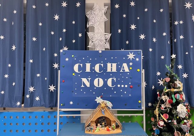 W filii naszej szkoły odbyło się doroczne spotkanie bożonarodzeniowe, które zgromadziło zaproszonych gości i społeczność Oddziału Psychiatrycznego dla Dzieci i Młodzieży Szpitala Neuropsychiatrycznego im. prof. Mieczysława Kaczyńskiego. Centralnym punktem wydarzenia była część artystyczna przygotowana przez dzieci i młodzież oraz wspólne kolędowanie. Młodzi artyści zgromadzeni wokół żłóbka wcielili się w role aniołów, Maryi, Józefa i Trzech Króli. Po występie naszych uczniów głos zabrali zaproszeni goście: