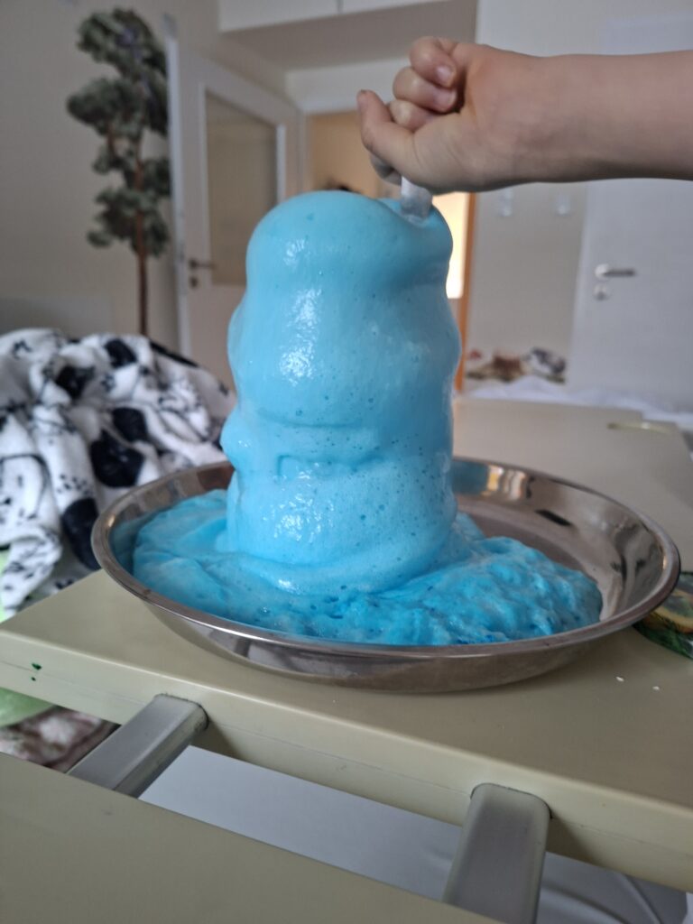 W marcu po raz kolejny w ramach projektu ,, Chemia w życiu codziennym” przedszkolaki miały okazję przeprowadzić eksperymenty chemiczne. Tego typu zajęcia mały na celu rozbudzenie ciekawości świata, naukę przez zabawę oraz rozwijanie kreatywności i myślenia przyczynowo – skutkowego. Poprzez proste, bezpieczne eksperymenty dzieci poznawały właściwości substancji, uczyły się zasad bezpieczeństwa oraz rozwijały umiejętności manualne i współpracę w grupie. Dzieci obserwując fascynujące reakcje, takie jak zmiana kolorów, powstawanie piany czy wulkanów, sprawiły, że nauka stała się dla nich atrakcyjniejsza. Eksperymenty stymulują ciekawość, uczą formułowania hipotez, analizowania wyników i wyciągania wniosków, co wspiera rozwój myślenia naukowego. Pokazują, że chemia jest obecna w codziennym życiu (w gotowaniu, w przyrodzie).