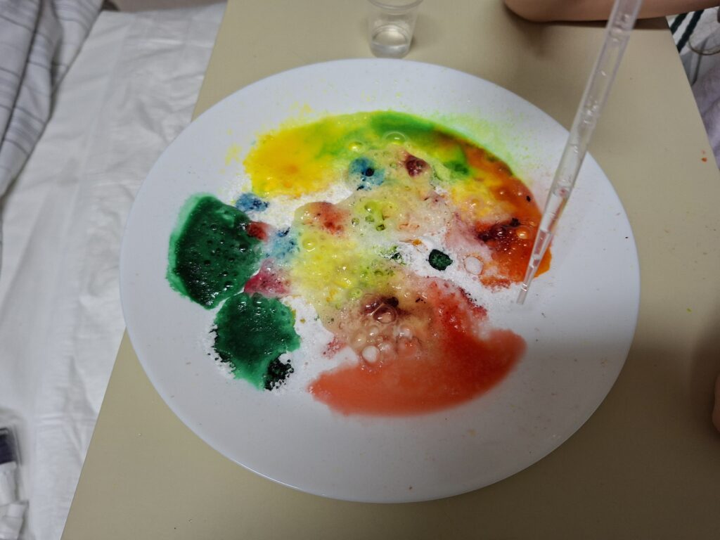 W roku szkolnym 2025/2026 uczniowie naszej szkoły w ramach autorskiego programu ,,Chemia w życiu codziennym” wezmą udział w cyklicznych warsztatach chemicznych, mających na celu przybliżenie dzieciom i młodzieży zagadnień związanych z chemią. Chcemy pokazać jak ciekawa jest to nauka. Uczniowie będą wykonywać eksperymenty i proste doświadczenia chemiczne w oparciu o materiały dostępne w warunkach domowych. W programie wezmą udział uczniowie szkoły podstawowej i ponadpodstawowej, jak i również przedszkolaki. We wrześniu miały miejsce pierwsze zajęcia. To był strzał w dziesiątkę. W roli głównej wystąpiły soda oczyszczona, kwasek cytrynowy, barwniki spożywcze oraz woda i olej. Natomiast uczniowie klas starszych wykonywali modele atomów. Dzieci były zachwycone i nie mogą się doczekać aby wziąć udział w kolejnych warsztatach. Zapraszamy na fotorelację.