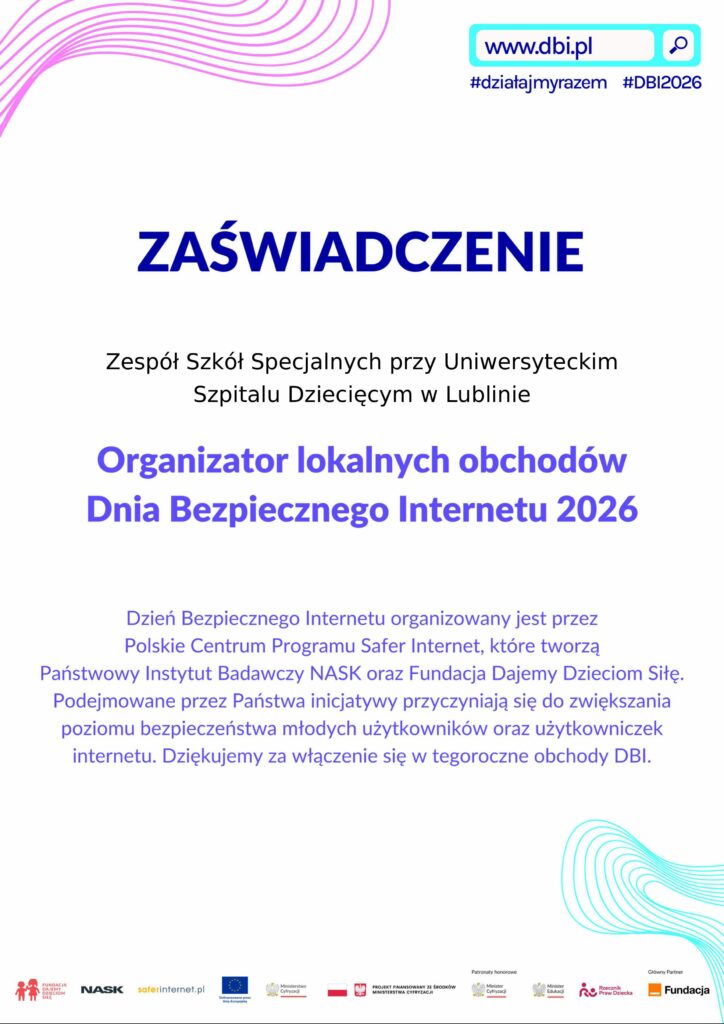 W lutym w ramach obchodów Dnia Bezpiecznego Internetu 2026 uczniowie Kliniki Psychiatrii pod kierunkiem nauczycieli – pani Anny Boczek i Barbary Chrzanowskiej brali udział w lekcji online nt. „Bezpieczeństwo w cyberprzestrzeni i radzenie sobie w sytuacji kryzysowych”. Spotkanie dotyczyło bezpieczeństwa w internecie oraz przeżywania kryzysów psychicznych przez młodych ludzi. Uczestnicy poznawali najczęstsze zagrożenia online, takie jak hejt czy manipulacja oraz dowiedzieli się, jak internet może wpływać na samopoczucie i zdrowie psychiczne. Omówiono, czym jest kryzys, jakie są jego sygnały ostrzegawcze oraz dlaczego proszenie o pomoc jest ważne. Spotkanie zakończyło się wskazaniem konkretnych źródeł wsparcia. Uczniowie wykonywali netykiety oraz plakaty profilaktyczne promujące to wydarzenie.