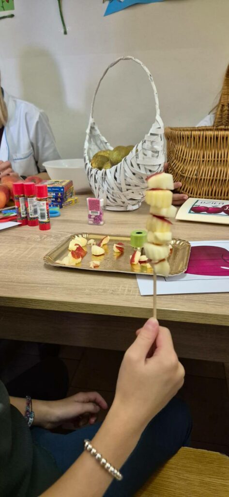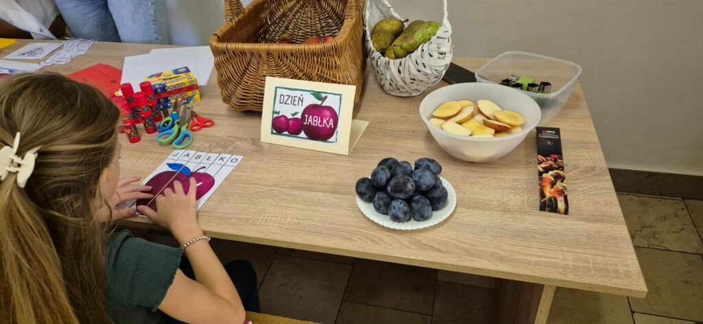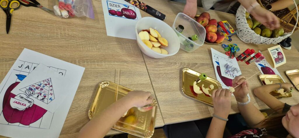 2 października uczniowie naszej szkoły uczestniczyli w Dniu Jabłka. Mieli do wykonania kilka zadań, które sprawiły im wiele frajdy. Na przykład wycinanie kształtów z jabłek i stworzenie z nich szaszłyków. Poznały również cykl życia jabłka. A na sam koniec za wytrwałą i piękną pracę otrzymały witaminki w postaci owoców.
