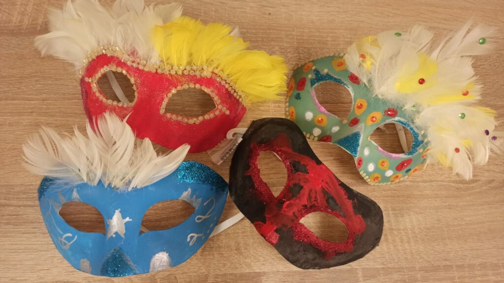 Tradycja obchodzenia karnawału sięga jeszcze czasów starożytnego Rzymu, kiedy ludzie przebierali się, ucztowali i odwracali role społeczne (np. niewolnicy mogli „rządzić” przez jeden dzień. Współcześnie, w kulturze chrześcijańskiej jest to czas radości, zabawy i wspólnego biesiadowania z innymi przed Wielkim Postem. To czas bali maskowych, ostatków i tradycji Tłustego Czwartku. Nasi uczniowie przygotowali w okresie karnawału wspaniałe maski karnawałowe, które będą ozdobą podczas wspólnych zabaw i spotkań. Cieszymy się, że tradycja karnawałowego szaleństwa jest wciąż żywa i raduje nasze serca. Życzymy naszym podopiecznym wspaniałej zabawy !!!
