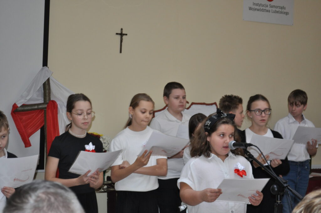 Nasi uczniowie wraz chórem dziecięcym z Zespołu Szkolno-Przedszkolnego nr 3 w Lublinie przedstawili program artystyczny pt. ,,Mój kraj moja dumna”. Występ zawierał autorskie wiersze naszych wychowanków oraz pieśni patriotyczne. Wydarzenie uświetnił występ Pań i Panów z KGW Zagrody Razem. Młodzi ludzie zachwycili przepięknym występem.