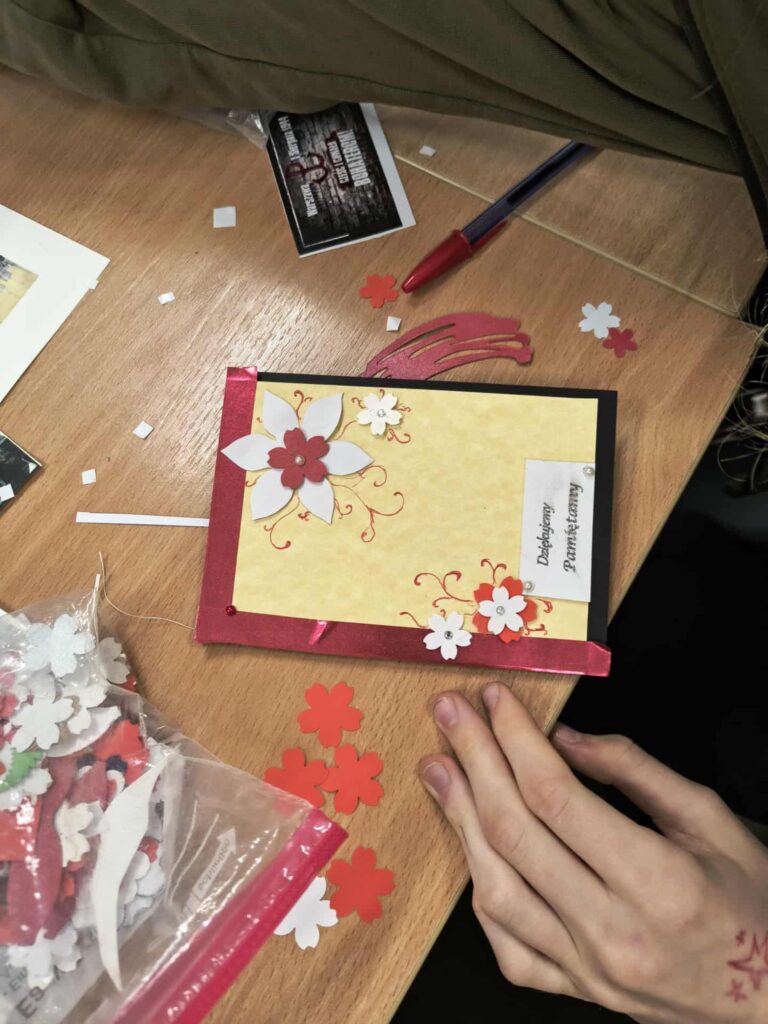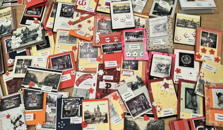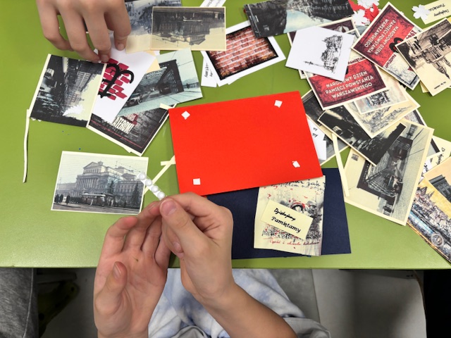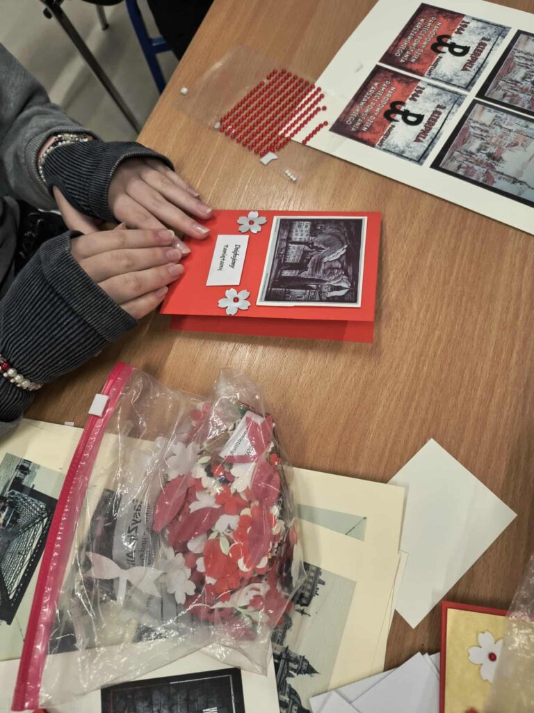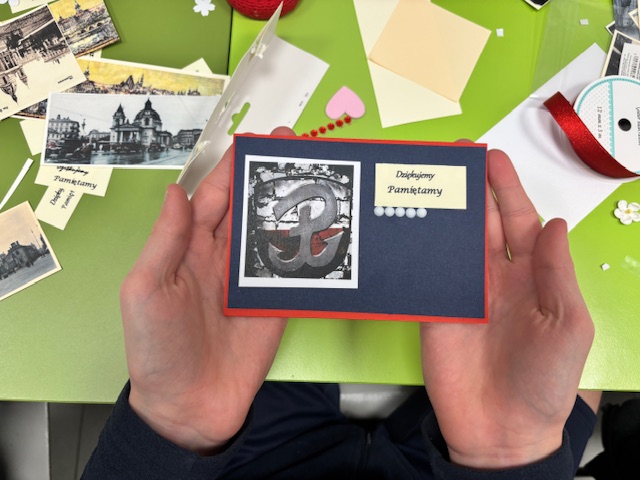 W dalszej części warsztatów uczniowie przygotowali własnoręczne, wyjątkowe kartki w ramach akcji BohaterON „Kartka dla Powstańca”. Powstały prace pełne wdzięczności, szacunku i pamięci o Powstańcach.