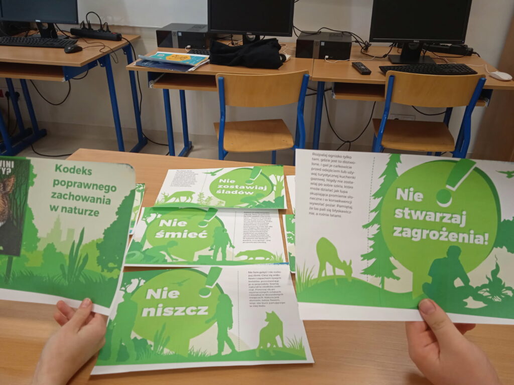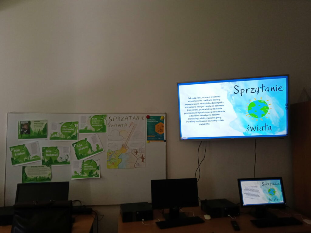 Na zajęciach biologii i chemii na podstawie filmu edukacyjnego i prezentacji multimedialnej poruszaliśmy tematykę ochrony zasobów naturalnych, ekologii, segregacji odpadów. Wyjaśnialiśmy wpływ codziennych zachowań w domu, szkole, miejscu wypoczynku na stan środowiska naturalnego. Promowaliśmy nieśmiecenie poprzez wykonywanie plakatów ekologicznych i udział w konkursie ekologicznym, którego myślą przewodnią było wykonanie atrapy promującej zdrowie a wykonanej z odpadów. Posprzątaliśmy również przyszpitalny park.