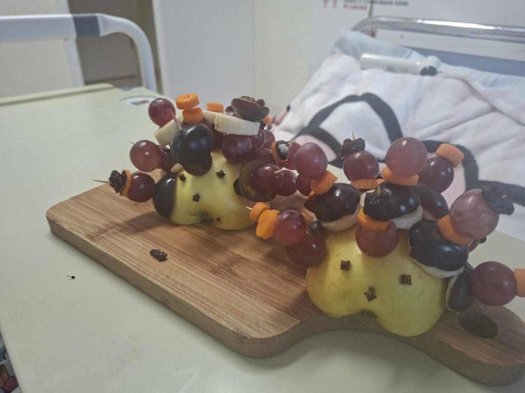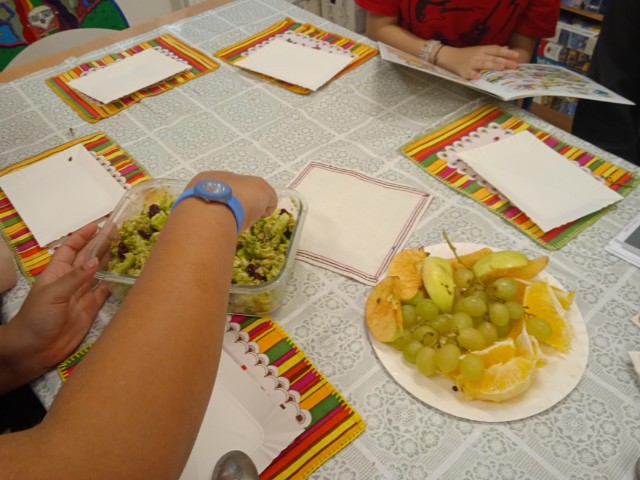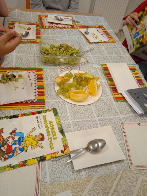 Po części teoretycznej następowała część praktyczna, bardzo lubiana przez uczniów. Przygotowywaliśmy zdrowe sałatki warzywne oraz potrawki, ciasteczka cynamonowe, pierniczki, gofry, koktajle owocowo – mleczne, kreatywne owocowe zwierzaki oraz pieczone warzywa. Punktem kulminacyjnym każdych warsztatów była wspólna degustacja przygotowanych dań.