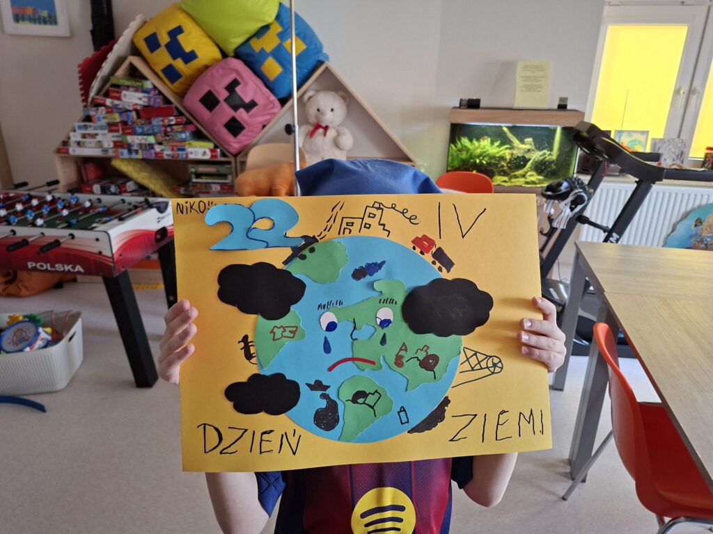 22 kwietnia obchodziliśmy Światowy Dzień Ziemi. W ramach projektu ,,Wygrajmy ze smogiem” przedszkolaki z naszej szkoły przygotowały proekologiczne plakaty zwracające uwagę na problemy dotykające Ziemi tj.: zmiany klimatu, zanieczyszczenia powietrza, nadmierna produkcja odpadów, zużycie wody i energii czy ochrona bioróżnorodności.