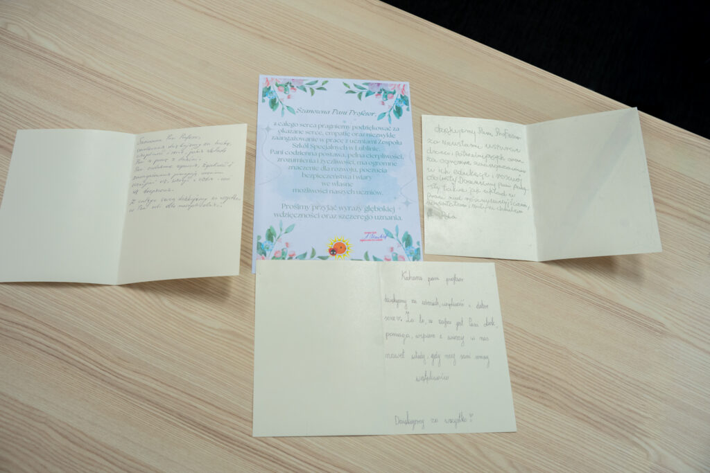 Uczniowie szkoły przyszpitalnej odwiedzili Panią Profesor Sabinę Bober w Urzędzie Marszałkowskim, pragnąc wyrazić swoją wdzięczność za okazywane im serce, życzliwość i nieustanne wsparcie. Spotkanie przebiegło w serdecznej i pełnej ciepła atmosferze.