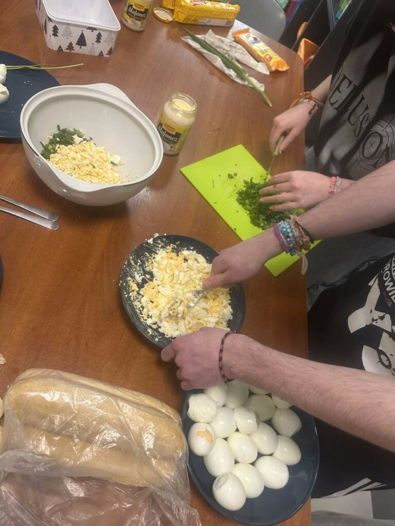 „Wychowanie przez gotowanie” – uczenie otwartości na różnorodne podejścia do żywienia 24 marca 2026 roku na oddziale dziecięcym Szpitala Neuropsychiatrycznego odbyły się kolejne zajęcia wychowawcze realizowane w ramach innowacji pedagogicznej „Wychowanie przez gotowanie”, tym razem pod hasłem „Gotujemy z roślin – wege miesiąc”. W roli głównej wystąpiły jajka i warzywa – produkty proste, dostępne i niezwykle uniwersalne. Uczniowie przygotowali pyszną pastę jajeczną ze szczypiorkiem, którą podawano na chrupiących grzankach lub krakersach. To szybka, zdrowa i praktyczna propozycja, którą można wykorzystać w codziennym jadłospisie.Zajęcia miały charakter wielowymiarowy. Oprócz promowania zdrowego odżywiania rozwijały:umiejętność współpracy w grupie,samodzielność w działaniu,otwartość na nowe smaki i rozwiązania kulinarne,świadomość różnorodności nawyków żywieniowych,zainteresowania związane z branżą gastronomiczną, wpisując się w działania z zakresu doradztwa zawodowego.Spotkanie było nie tylko kulinarną przygodą, lecz także ważnym krokiem w stronę kształtowania postaw szacunku, ciekawości i elastyczności wobec odmiennych wyborów żywieniowych.