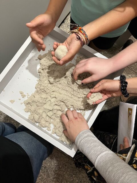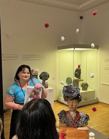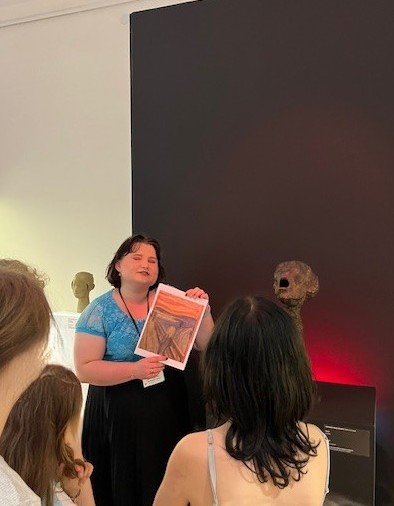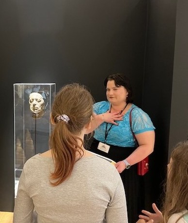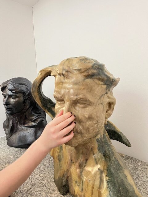 Pierwszym punktem było zwiedzanie wystawy „Spójrz mi prosto w twarz. Abakanowicz i inni”. Czytamy w informatorze „Ta wystawa to podróż przez powojenne doświadczenia wyrażone w rzeźbie”. W prezentowanych twarzach zapisane są nie tylko emocje, ale także historie, traumy i nadzieje. Uczniowie wraz z panią edukator przyglądali się postaciom i wspólnie zastanawiali, co one czują, ucząc się tym samym rozpoznawania i interpretowania emocji. Była też możliwość dotknięcia i poczucia struktury wybranych eksponatów, co jest rzadkością w muzeach.